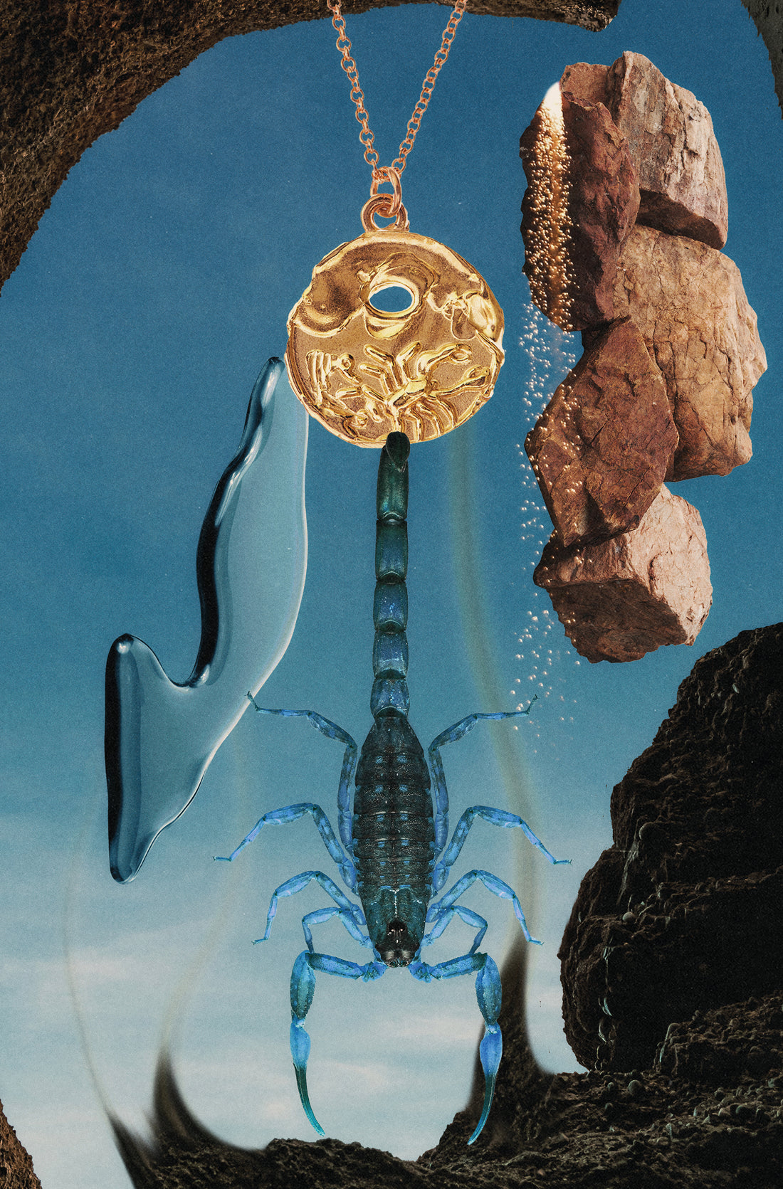 Enter the world of the Scorpio brought to you with otherworldly artist, Mat Maitland and Vogue Astrologer Alice Bell. Carry the power of your sign to stay connected to your stars.