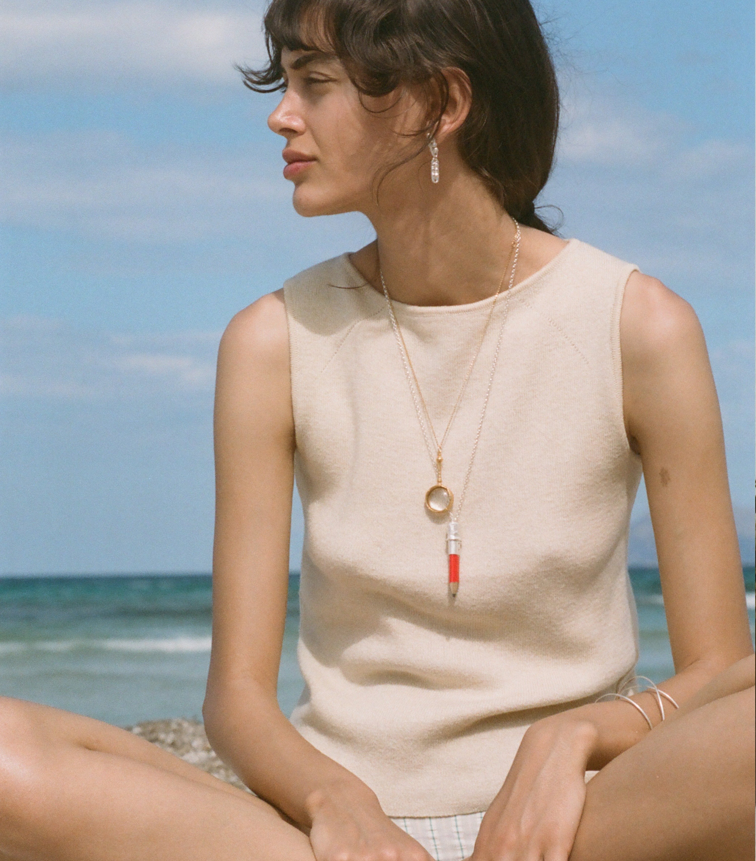 “Ever since I was little, my books and stationary have been my friends. I was always fascinated by the objects I would find in libraries and the studies of my grandparents: from their favourite pencil tins, to mother of pearl magnifying glasses. Reading allowed me to see the world in focus, large and full of adventure. I created the Poet’s Lens to remind me of this feeling: I carry it around my neck as a little secret, a humorous nod to times gone by.” - R.M.
