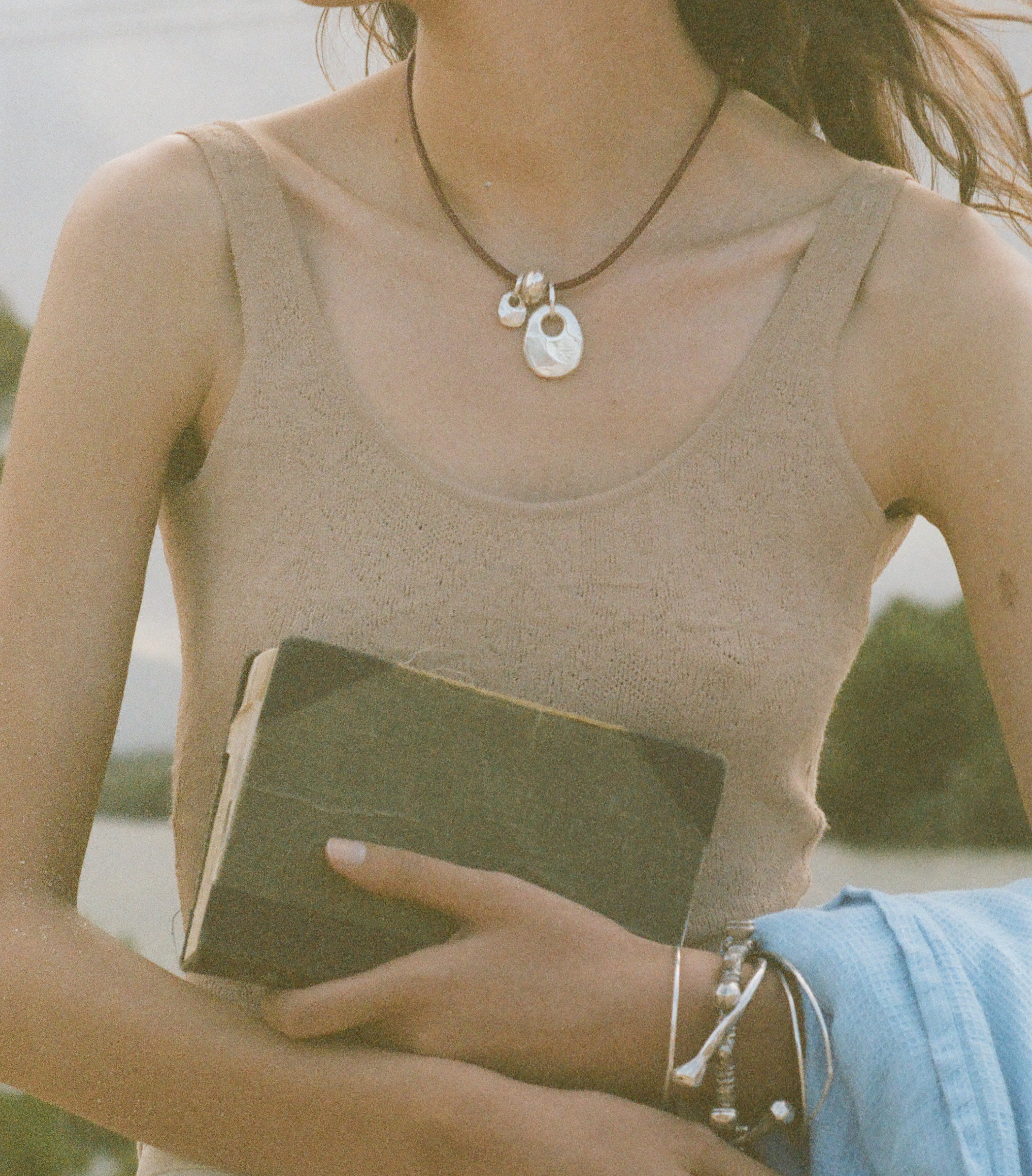 “I’ve always loved collecting pebbles and shells. As a child, these would live in my little tin pencil case, with my red pencils and ink bottles. I would use them to hold down the pages of my book when reading by the sea. The amulets on The Reader on the Shore Choker are a tribute to my childhood pebbles.” - R.M.