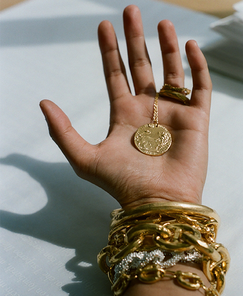 "I created the Leone Medallion as a personal reminder to be strong in a moment of self-doubt. I recovered and restored an old Venetian coin with wax, and wore it as a secret message to myself." - Rosh Mahtani