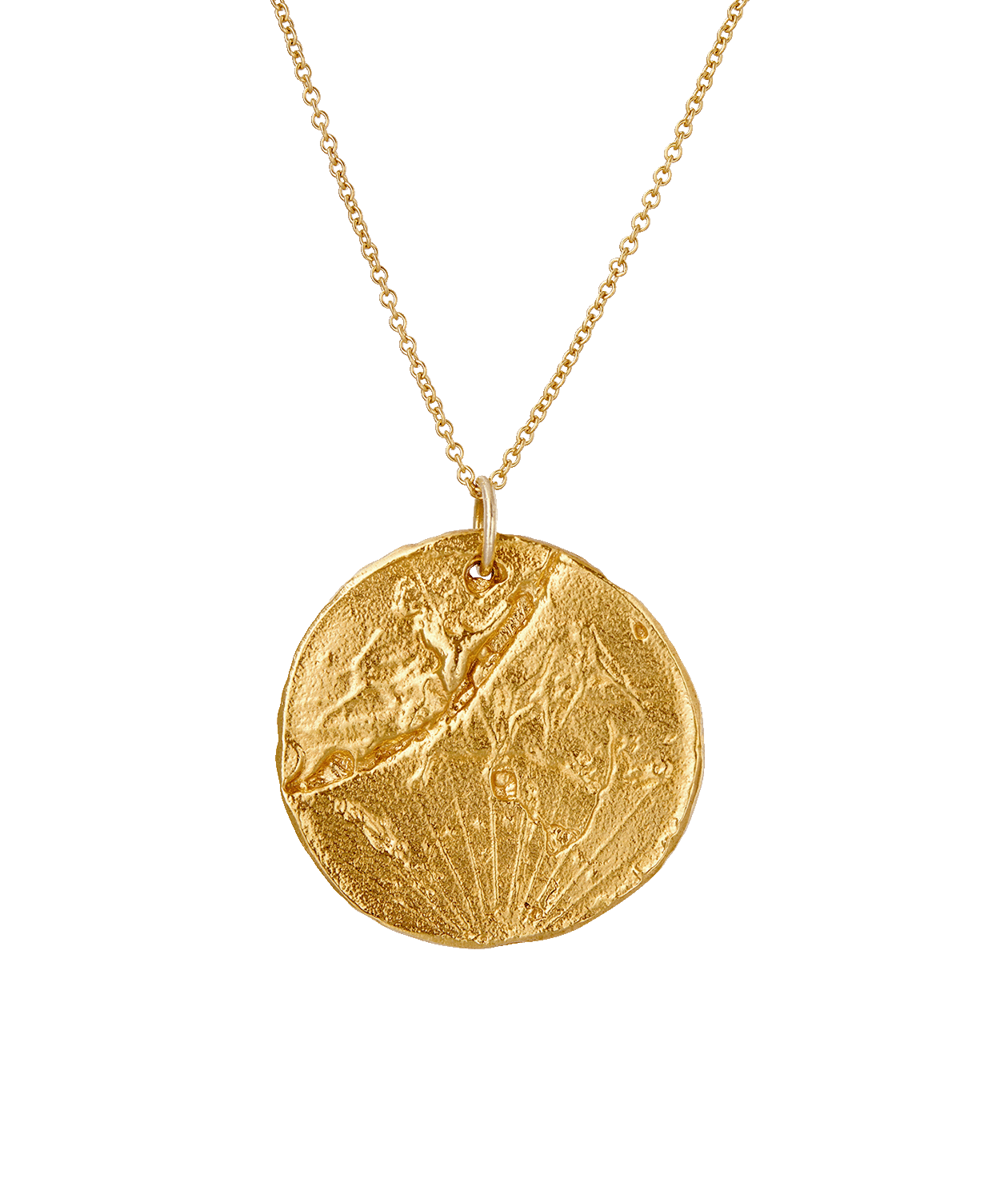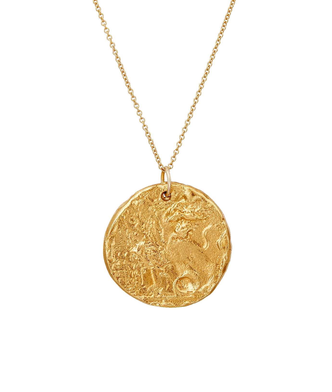 The Celestial Leo Medallion is crafted from 24kt gold-plated bronze in Hatton Garden, London.